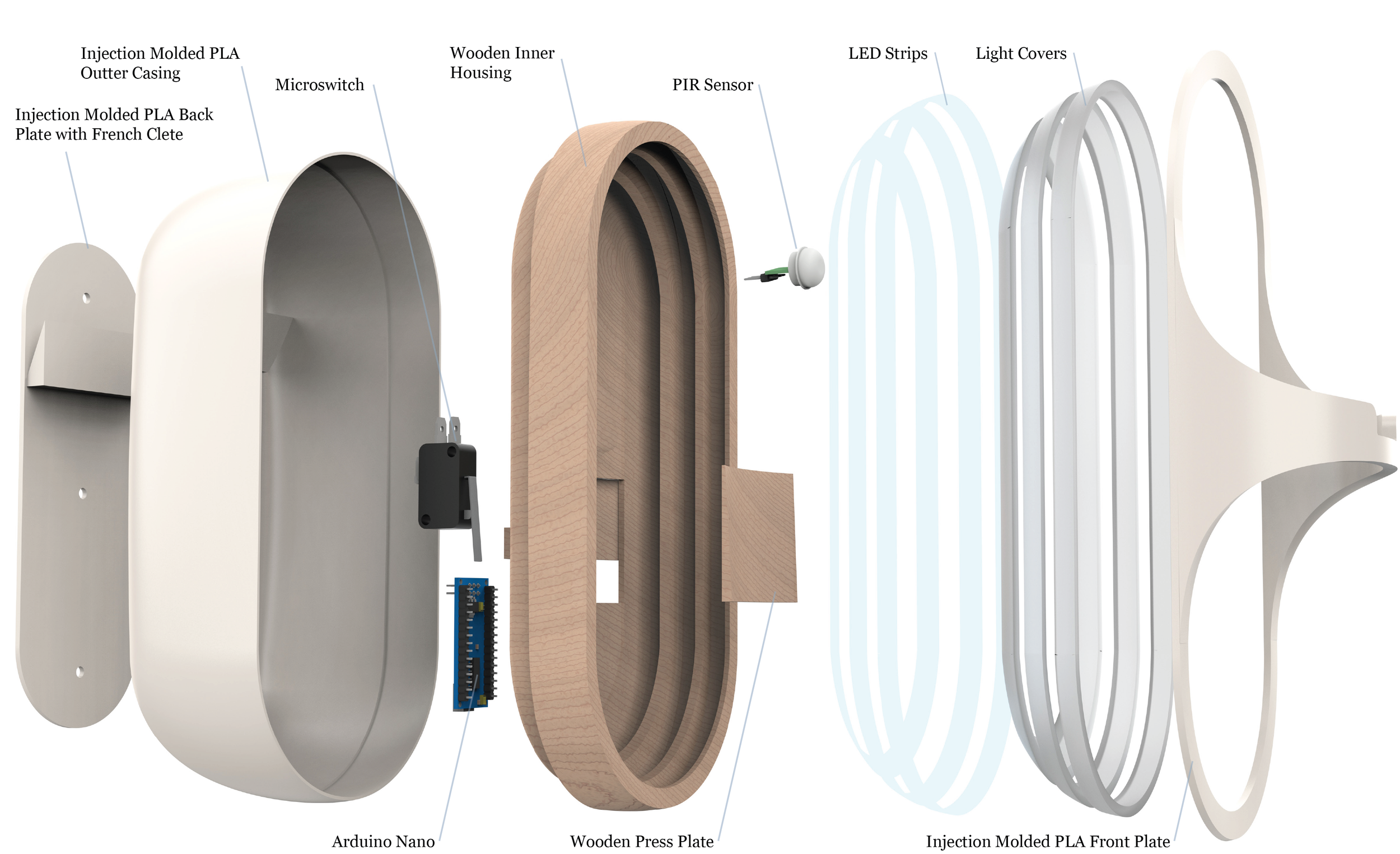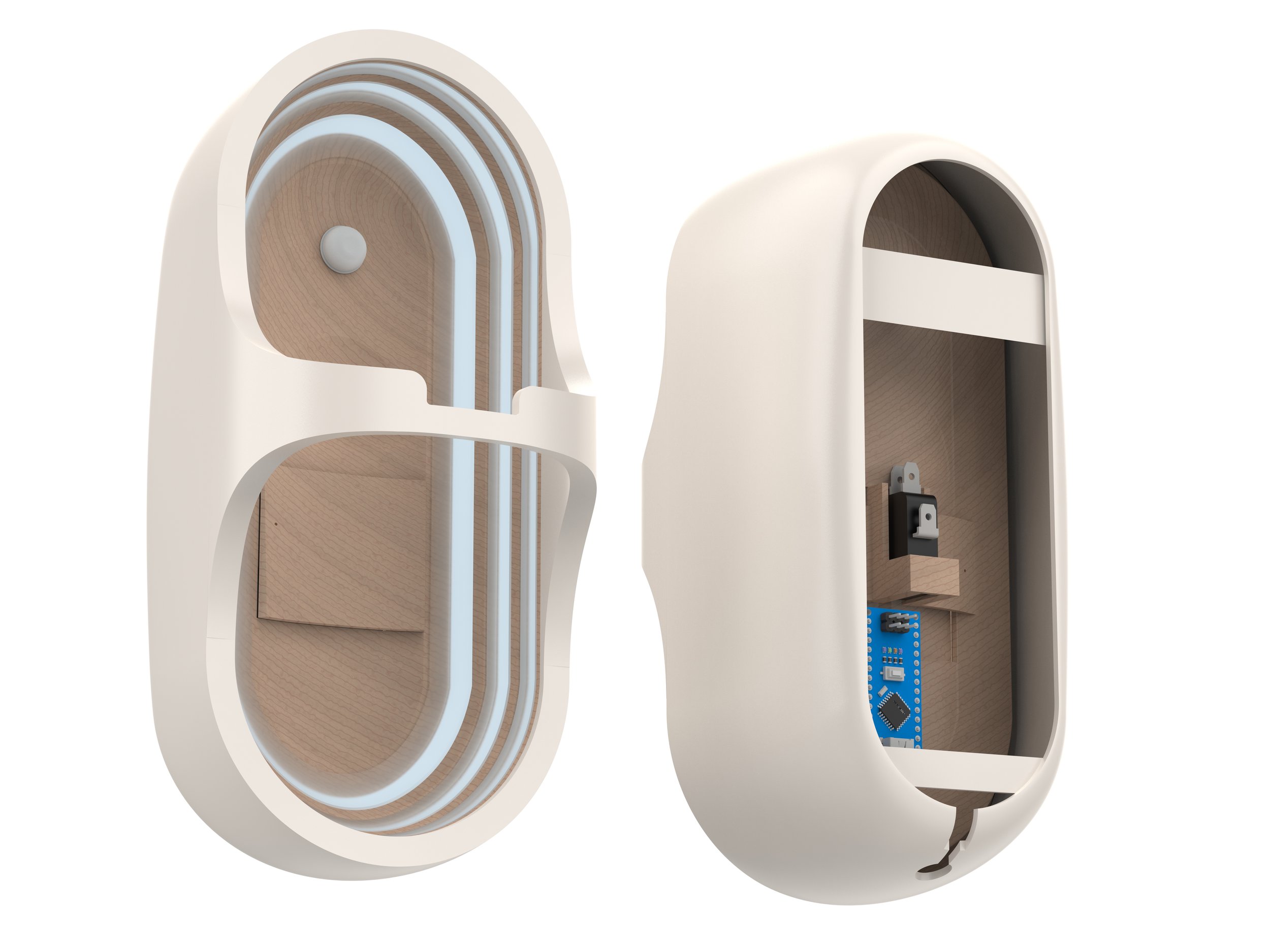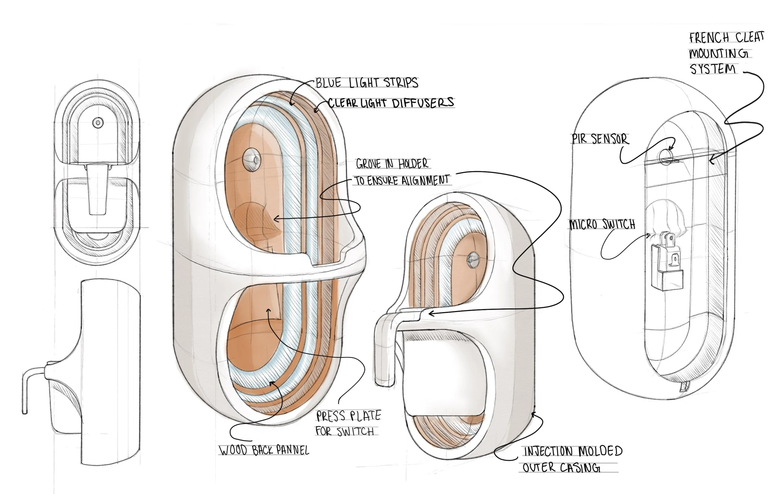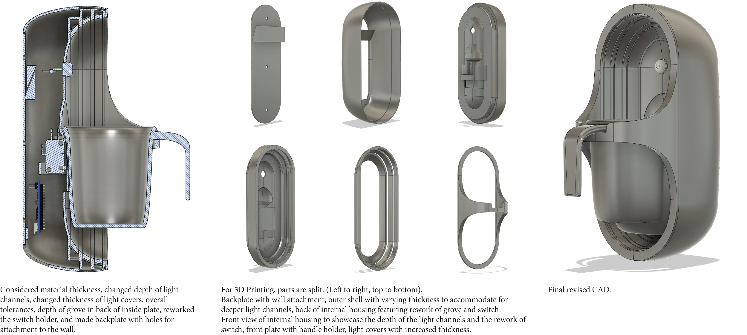 Explored lighting placements, cup and holder interactions, and internal components to finalize design..
